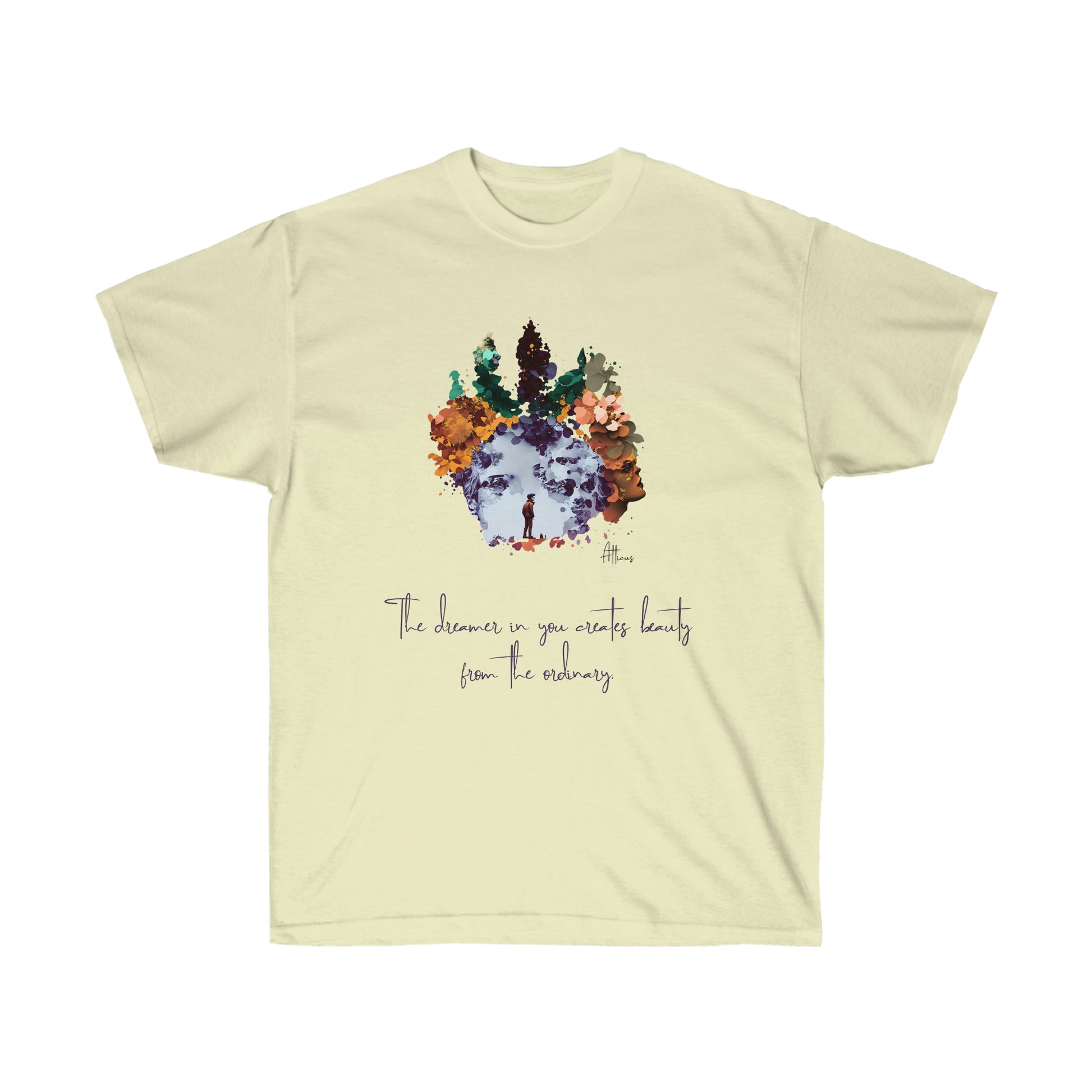 The unisex ultra cotton tee with the phrase "the dreamer in you" is a timeless piece. Its high-quality cotton material allows designs to stand out. The upper-body fit is enhanced with shoulder tapping, and the absence of side seams provides a seamless appearance. Additionally, the collar features ribbed knitting to improve its elasticity. This product has been made using sustainably sourced and economically friendly materials.